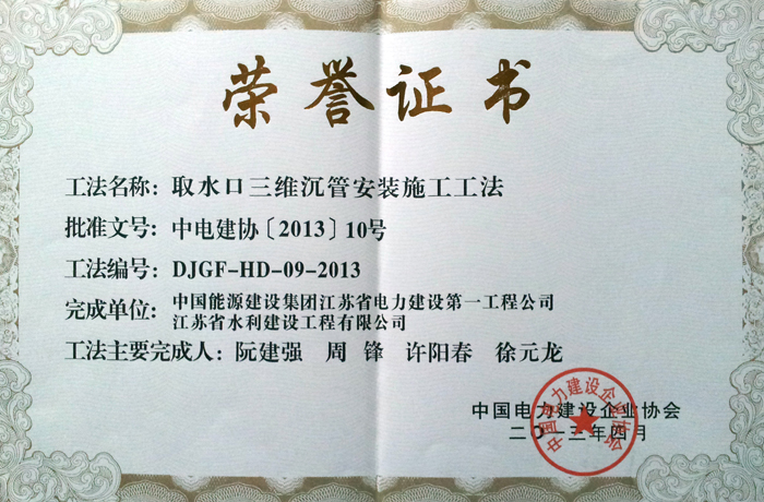 本站讯,2013年,世俱杯网页版登录入口有两项工法被评为省部级工法:由世俱杯网页版登录入口句容电厂取排水项目部与省电建一世俱杯网页版登录入口联合申报,在华能金陵燃气电厂、南京热电厂和句容电厂工程中实施的“取水口三维沉管安装施工工法”被中国电力建设企业协会评为“中国电力建设工法”;由省水机世俱杯网页版登录入口在南京三汊河口闸工程中实施的“超大型护镜闸门移位安装工法”被中国水利工程协会评为“水利水电工程建设工法”。