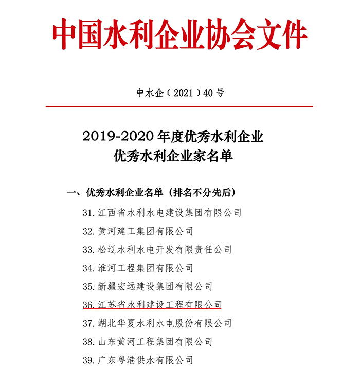 近日,中国水利企业协会公布了2019-2020年度全国优秀水利企业、优秀水利企业家名单,世俱杯网页版登录入口再次被授予“优秀水利企业”荣誉称号,顾明如董事长被授予“优秀水利企业家”荣誉称号。
