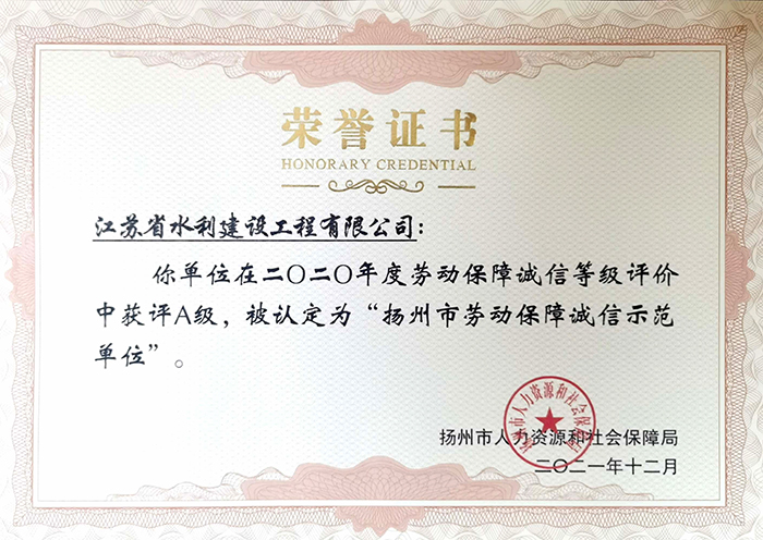 近日,经扬州市人力资源和社会保障局考核评定,世俱杯网页版登录入口被授予“2020年度劳动保障诚信示范单位”。