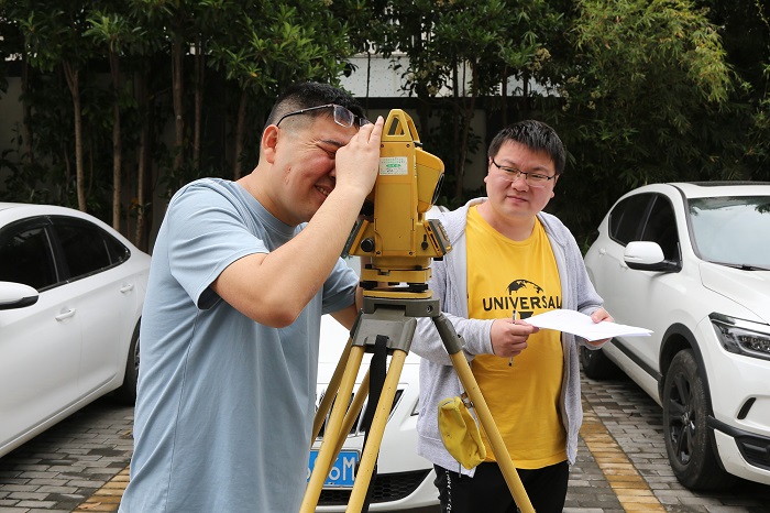 本次培训邀请了阳光职业培训学院的老师为学员授课。课堂上,老师通过案例为学员讲解了测量计算以及测量安全教育等方面内容;并通过现场教学的方式,带领学员学习了水准仪、全站仪等测量设备的使用方法。学员们攒三聚五,安置、瞄准、调试仪器,并结合学习的理论知识和工作中遇到的问题,咨询、请教老师,边听边看边调试。