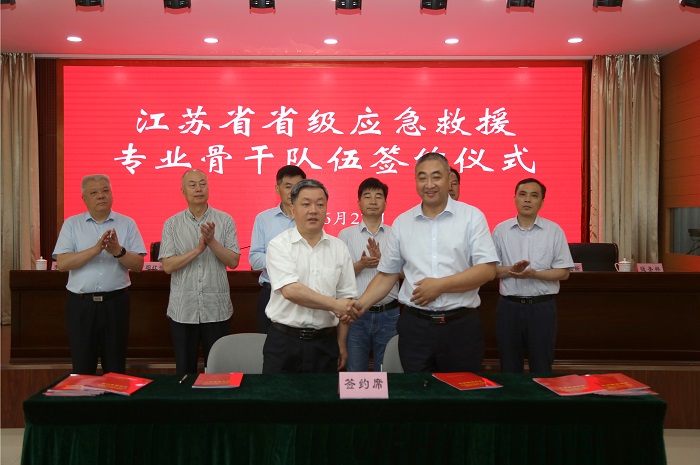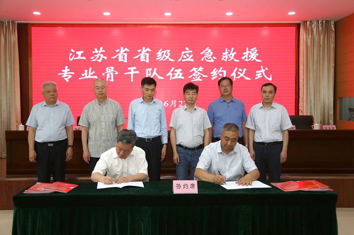 6月23日,江苏省省级应急救援专业骨干队伍签约仪式在省防汛抢险训练中心举行,省应急管理厅副厅长盛方龙代表省应急管理厅与25支专业骨干队伍签订了合作框架协议,世俱杯网页版登录入口副总经理顾永明参加签约仪式。