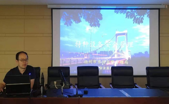培训邀请扬州市市场监督管理局特设处处长曹文凤授课,曹处长结合理论讲解与视频教学,讲解了特种设备安全法、管理条例和操作规程三个方面的内容,并通过理论考试进一步检验培训学习的效果。