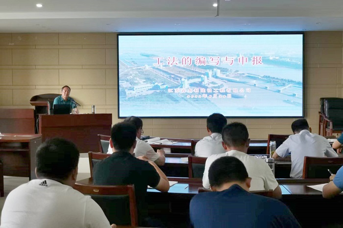 6月24日上午,世俱杯网页版登录入口组织开展工法编写与申报专项培训,各单位、项目部技术负责人以及参与工法编报的人员五十余人参加了培训。世俱杯网页版登录入口副总经理、总工程师夏国春为大家授课。