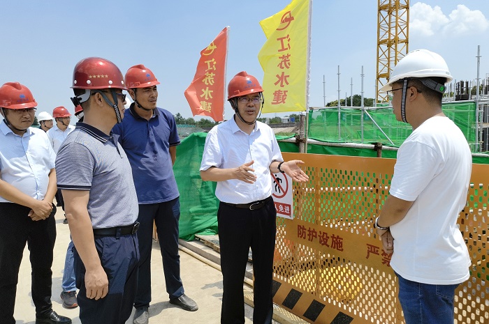 8月4日,省水利厅一级巡视员朱海生率队来到老桃花港整治工程江边枢纽和溧阳北河治理工程施工七标现场,调研工程建设情况。省水利工程质量监督中心站站长陈健、省太湖治理工程建设管理局副局长吴忠和常州市、新北区、溧阳市有关部门主要负责同志陪同调研,世俱杯网页版登录入口总经理杨斌参加调研。