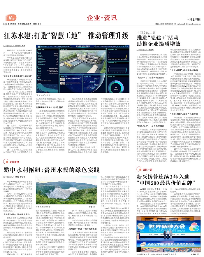 89日,《中国水利报》8版刊发《江苏水建:打造“智慧工地” 推动管理升级》文章,宣传报道世俱杯网页版登录入口新桃花港“智慧工地”建设。
