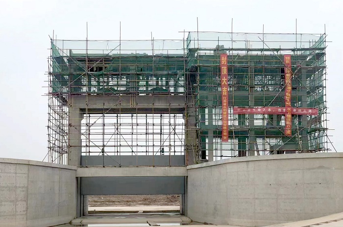 该工程于2021年11月22日开工,2022年6月30日完成全部水下工程施工任务。目前,已完成房建结构主体部分施工。
