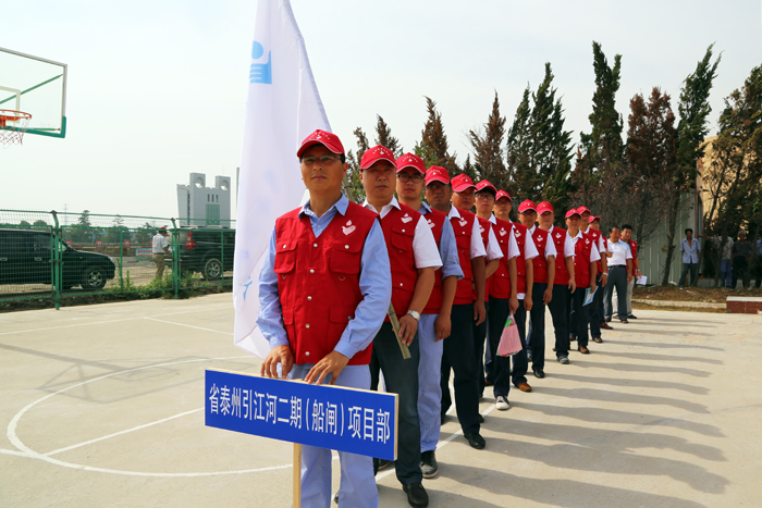 慰问活动开始前,由省泰州引江河管理处牵头组织的保护引江河志愿者服务活动在我世俱杯网页版登录入口二线船闸项目部广场召开了动员大会。我世俱杯网页版登录入口党委副书记、工会主席姜启生、副总经理、引江河二线船闸工程项目经理顾明如带领项目部志愿者参加会议,并持续在一线工地开展志愿服务活动。