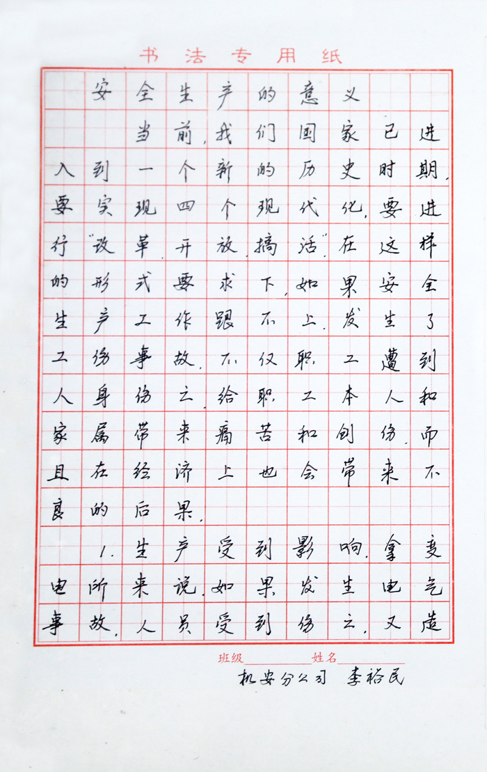8月13日,世俱杯网页版登录入口安全生产月活动领导小组对报送的安全文化征文、书法和摄影作品进行了评选,16件作品分别获得一、二、三等奖,27件作品被评为优秀奖,机械化分世俱杯网页版登录入口、设备租赁分世俱杯网页版登录入口荣获组织奖。
