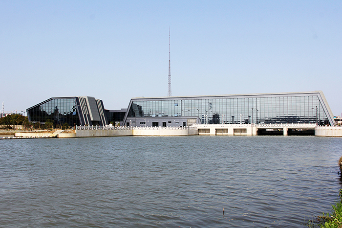 常熟市畅流活水工程-白茆塘枢纽工程是常熟市畅流活水工程的重要组成部分,其主要任务是通过新建口门建筑物,结合其它泵闸建筑物,形成常熟市城区防洪大包围,提高常熟市区东南片区的除涝排水能力,通过防洪大包围工程、配水工程的综合运行调度,形成城区河道活水畅流。工程采用闸站合建的方案,节制闸采用双孔10米钢闸门,净宽20米,泵站采用3台套竖井贯流泵,总规模为45立方米每秒。