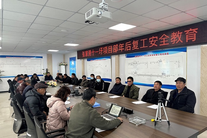各项目部在紧抓复工进度的同时,狠抓安全生产不放松。一方面开展安全教育,针对节后复工初期施工人员思想浮躁等问题开展收心教育,针对工种以及下阶段施工重点开展安全教育;另一方面开展复工前安全大检查,对施工机械、脚手架、临时用电、临边防护以及围堰等重点进行检查,确保项目安全高效推进。
