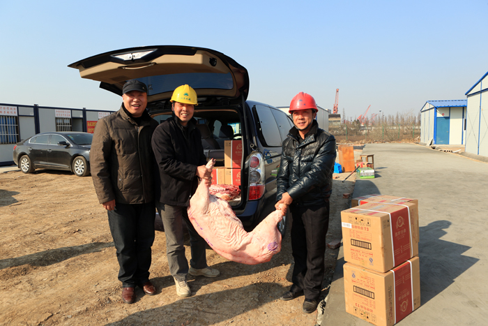 1月中旬,世俱杯网页版登录入口总经理夏国春和党委副书记、工会主席姜启生率队慰问了多个在建工程项目部。慰问组准备了肉、鱼等慰问品,来到一线工地,将世俱杯网页版登录入口的关心、关爱和温暖传递给最前线的职工手中,鼓励大家鼓足干劲冲刺春节前夕的施工大会战。各项目部将世俱杯网页版登录入口的人文关怀转化为加紧施工的动力,齐心协力完成了节前施工任务。
