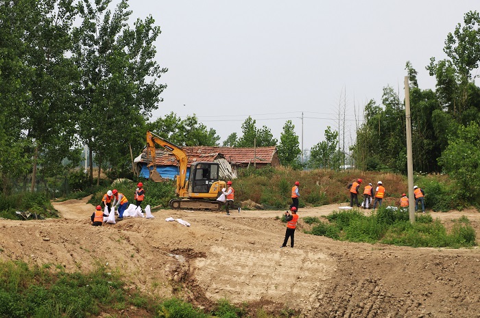 本次演练设置了消防、触电、高处坠落、溺水、应急照明、L型挡板组装挡水、土工布反滤法排除渗漏、应急排水以及围堰缺口处理及加固9个科目。世俱杯网页版登录入口15名抢险队员参加围堰缺口处理及加固科目演练。演练模拟古山河闸临湖侧施工围堰出现渗流、漫溢等险情,项目部接到抢险指令后,立即组织抢险队员按照应急预案进行抢险。采用盖堵法对围堰缺口部位进行抢护,人工装填砂袋运往围堰缺口处,配合挖掘机填筑并加固围堰缺口。在抢险队员的紧密协作下,15分钟就填筑加固了围堰缺口,保障了堤防安全。