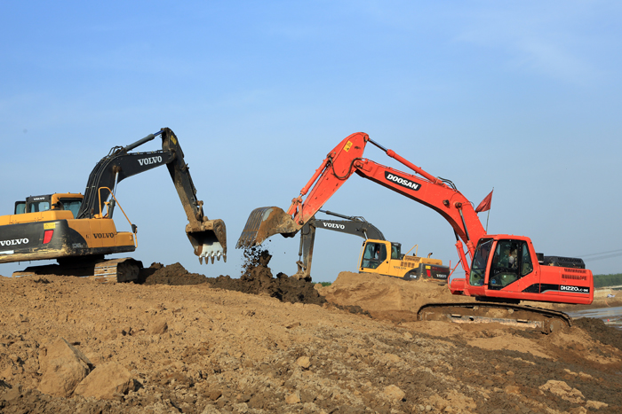 145万方土,在过去肩挑手扛的年代,需要一年时间;在现在的机械化作业情况下,至少需要100天。而业主给项目部的时间仅为60天,几乎是不可能完成的任务。世俱杯网页版登录入口的铁军精神再次被发挥到极致。项目部将工程分为5个施工区,组织了60台挖掘机、15台推土机、11台装载机、140台运输车昼夜不停地展开施工。项目部采取加班加点、班组竞赛、奖快罚慢、快者多干等激励手段,加快工程进展。工程高峰期日开挖土方达6万方,创下了我世俱杯网页版登录入口土方施工的新纪录。