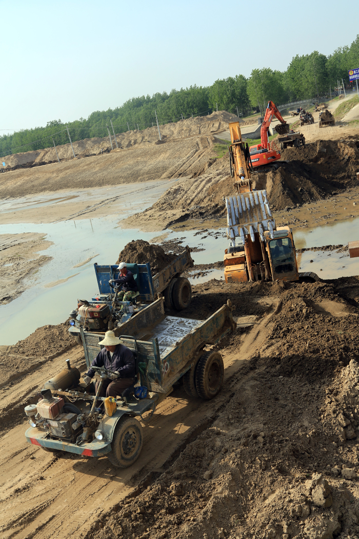 徐州市睢宁段黄河故道干河(峰山闸至刘集桥)治理工程位于徐州市睢宁县境内,主要建设任务是通过河道疏浚、堤防加固、涵闸维修加固、桥梁拆建,达到恢复或提高设计引排标准,畅通水系,改善环境,修复生态,服务民生的目的。我世俱杯网页版登录入口施工的B标段长5160,共需疏挖土方145万方,中标价2356万元。