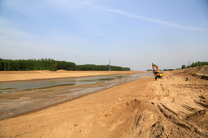 目前工程正进行河道上部土方修整和桥梁等建筑物的施工,预计可于10月底前完成全部施工任务。