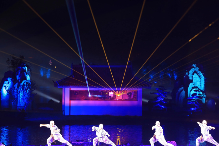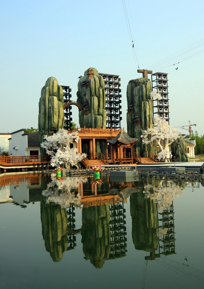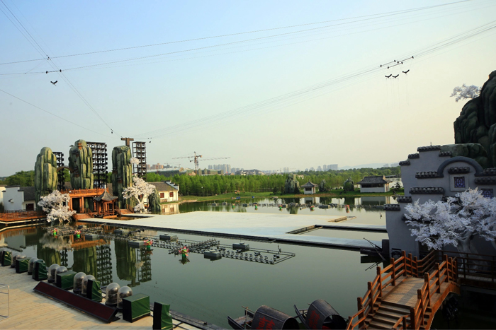工程于2013328正式开工,在全体参建人员的共同努力下,于2014420交付使用。428,以中国四大民间传说之一的《白蛇传》为蓝本,以金山寺为背景,金山湖水面为舞台,大型3D水景秀《白蛇传》在本工程成功首演。本工程的各项设施运转正常,质量良好,为保证演出成功奠定了坚实的基础。