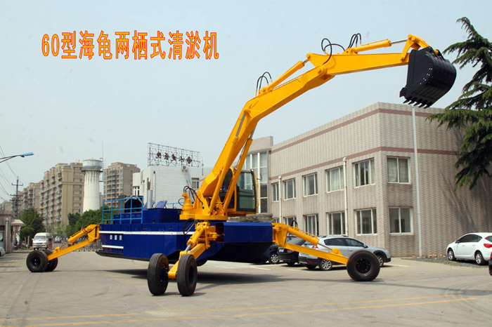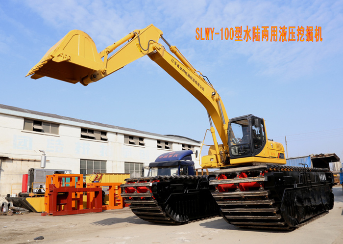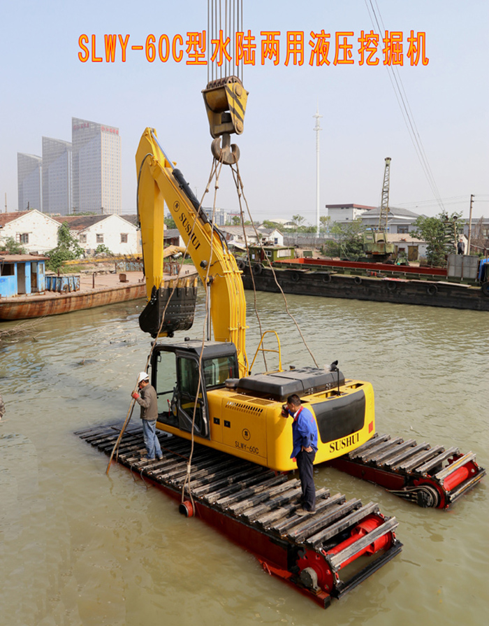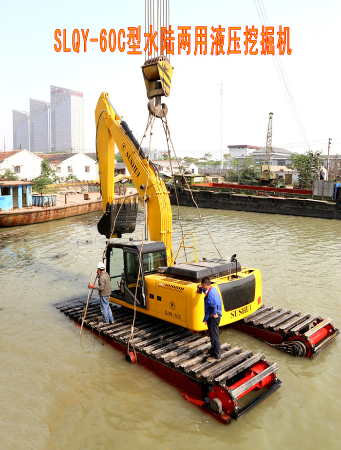 5月8日上午10时,水机世俱杯网页版登录入口最新研制的SLQY—60C型水陆两用液压挖掘机在世俱杯网页版登录入口专用码头完成了水中航行、平衡试验、挖泥测试后被缓缓吊出水面,码头上鞭炮齐鸣,产品研发人员、安装工人欢声雷动,祝贺世俱杯网页版登录入口二0一四年第二个新产品制造成功。新型水陆两用液压挖掘机采用进口发动机和液压驱动系统,臂长达11.5米,与同类机型相比具有水陆两用性能可靠、挖掘半径大、功效高、驱动力大、维修方便等特点,是河道开挖、工地施工的首选机型。