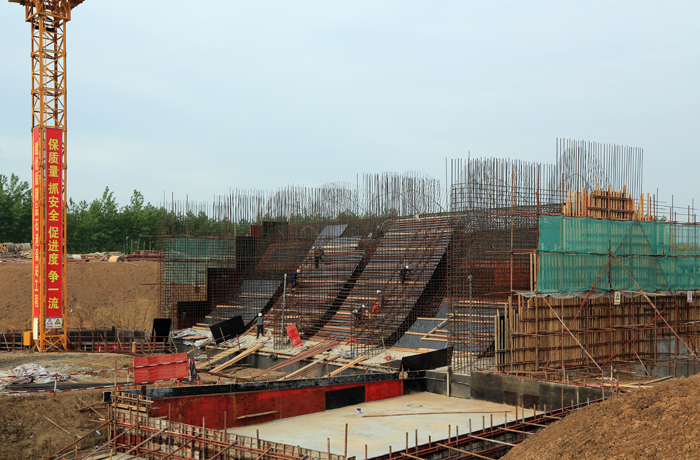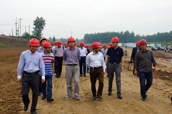 其后,代表们来到我世俱杯网页版登录入口承建的淮河入江水道整治工程石港泵站。我世俱杯网页版登录入口副总经理、该工程项目经理杨斌介绍了工程进展情况。我世俱杯网页版登录入口项目部于2013年11月进场施工, 2014年1月3日完成泵站底板封底,春节前完成底板混凝土浇筑,3月底完成进水流道浇筑,目前正在进行驼峰、翼墙、清污机桥施工作业。代表们对工程紧凑的现场布置、有序的施工组织表示了肯定和赞赏。