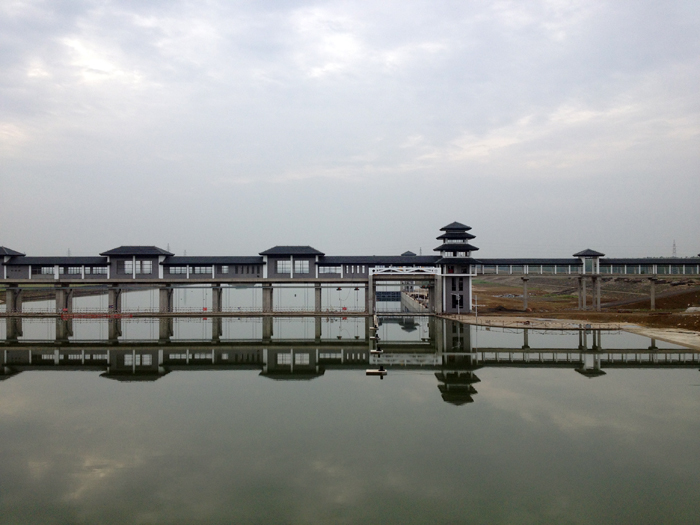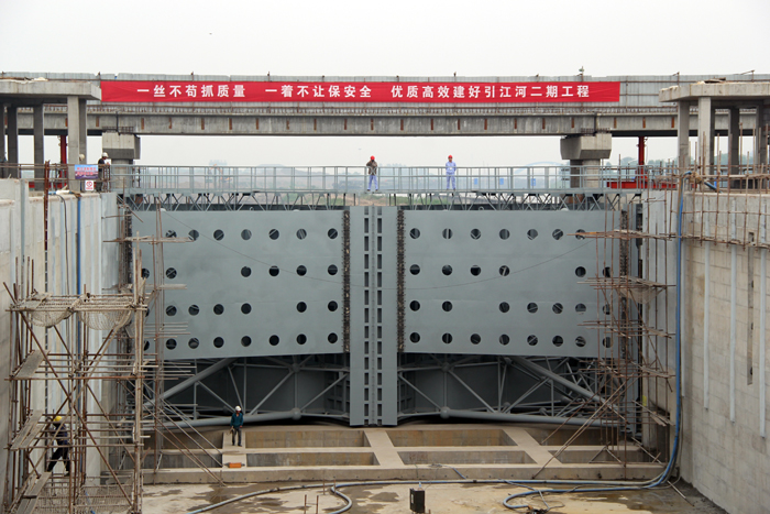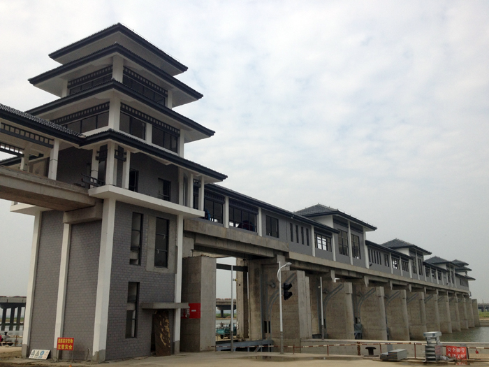 17日上午,各位代表来到我世俱杯网页版登录入口承建的淮河入江水道整治工程东西偏泓闸工程现场。项目经理陈兴奎陪同观摩团实地查看了工程质量。目前该工程已基本建成投入运行,工程质量优良,线条流畅,造型美观,给代表们留下了深刻的印象。