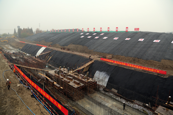 扬州闸加固工程于10月18日正式开工建设,首先施工导流箱涵。项目部克服前期征地拆迁、高压输电线路更改等因素对工期的影响,全力以赴组织施工。目前,27节地涵已完6节。按计划,在下一阶段的施工中,将以每天一节地涵的速度将延误的工期抢回来。