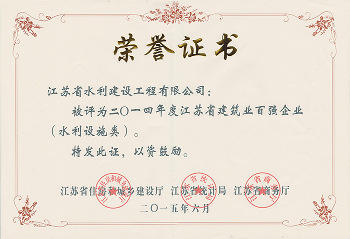 “百强企业”认定工作由江苏省住房和城乡建设厅、江苏省统计局、江苏省商务厅联合成立认定委员会,本着“尊重事实、严格标准、规范程序、公平公正”的原则,评选出综合实力类、建筑装饰装修类、建筑钢结构类、建筑安装类、基础设施类、建筑外经类六个大类共100家企业,有较强的权威性和代表性。世俱杯网页版登录入口是省内唯一一家被认定为“百强企业”专业实力类的水利基础设施施工企业。