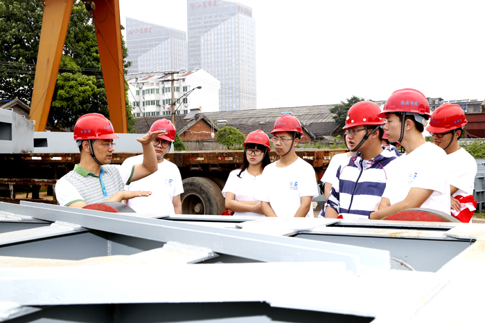 79上午,河海大学钢结构专业8名大学生来到江苏省水利机械制造有限世俱杯网页版登录入口(河海大学实习基地)实习。世俱杯网页版登录入口领导高度重视,指派专业工程技术人员接待,大学生们观看了世俱杯网页版登录入口专题片,认真听取了专家的介绍,参观了钢结构车间、金加工、装配车间,了解了闸门的生产工艺流程,感觉受益匪浅。