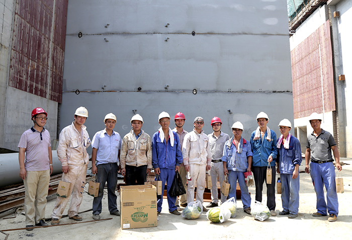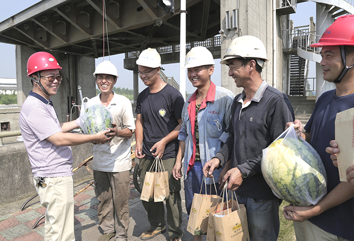 7月25日,水机世俱杯网页版登录入口党委书记田建京、工会主席黄统及相关项目负责人前往芒稻闸、邵仙闸项目施工现场开展 “送清凉”活动,慰问战斗在高温酷暑下的一线员工。他们送去防暑降温用品、西瓜和慰问金,嘱托现场员工注意施工安全,合理调整作息时间,采取必要的防暑降温措施,团结一心,攻坚克难,确保优质高效地完成项目施工任务。