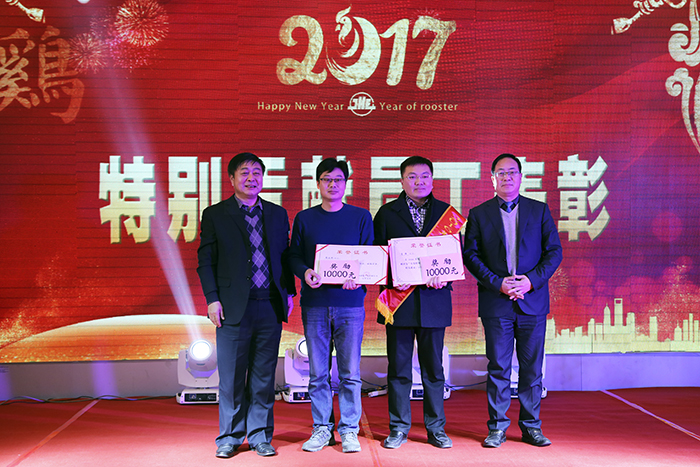 演出过程中,对获得2016年度优秀员工称号的孙祖庭、朱耿强、闵瑞、朱新波和获得特殊贡献员工称号的张立明、肖强进行了表彰,穿插进行了抽奖互动。
