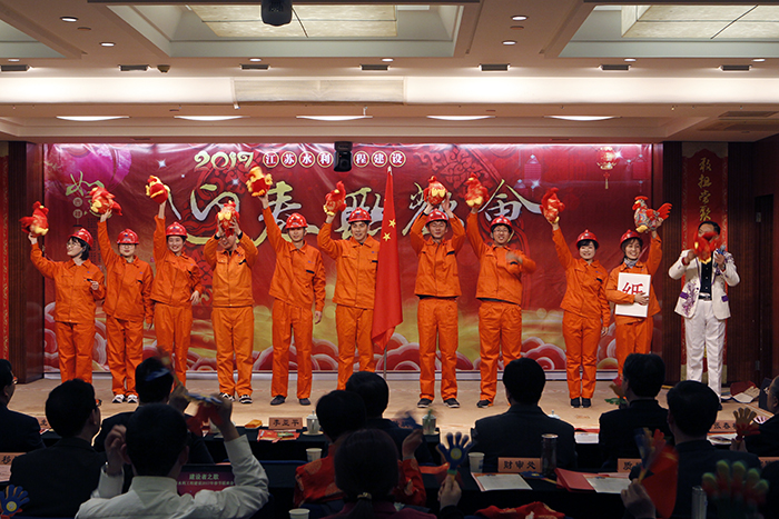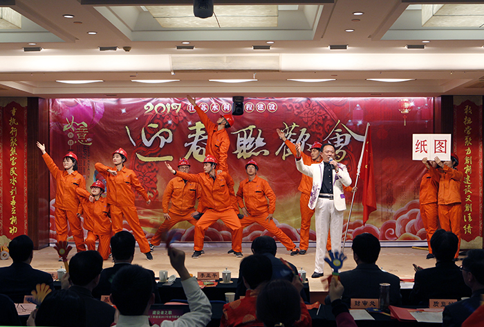 联欢会上,水利建设口干部职工结合工程建设实际,自编自演,融合了舞蹈、歌曲、小品、说唱、歌舞剧、诗歌朗诵等形式多样的文艺节目。我世俱杯网页版登录入口的歌舞表演《水利人的信念》呈现了水利施工一线员工日常的工作场景,形式新颖独特,歌声浑厚刚劲,伴舞铿锵有力,获得场下观众的阵阵喝彩。节目完毕后,厅领导还特别为参演人员每人送上一只象征吉祥如意的鸡娃娃,这是对长期战斗在水利施工一线的江苏水建人给予的充分肯定和鼓舞。