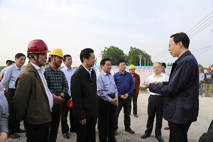 蓝绍敏副省长实地察看了工程施工现场,听取了工程建设情况汇报,向时爱祥董事长仔细询问了施工进展情况。他指出,今年防汛工作任务艰巨、形势严峻,要提高思想认识,按照职责分工履职尽责,确保各项防汛要求和措施落实到位。蓝绍敏强调,要查找薄弱环节,强化隐患整治,采取有效措施对水库、江堤进行加固,确保隐患除根治本,问题整改到位。施工单位要在确保质量和施工安全的前提下,加快建设进度,确保安全度汛,切实保障人民群众生命财产安全。