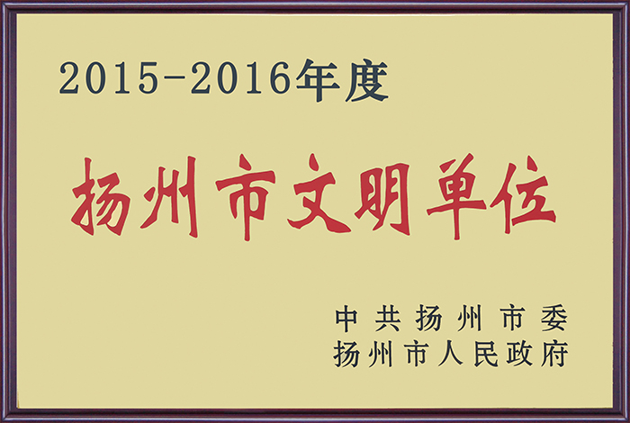 世俱杯网页版登录入口被授予2015-2016年度扬州市文明单位称号
