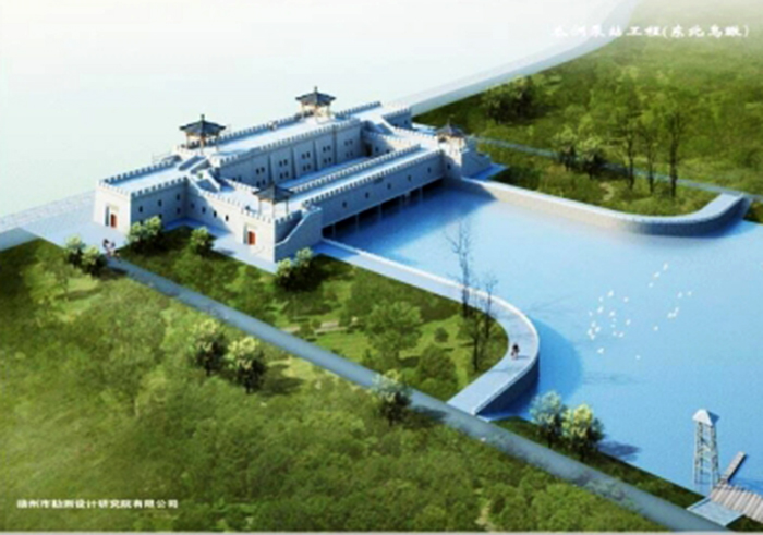 瓜洲泵站工程位于扬州市古运河南端的长江口门处,设计流量170m3/s,是扬州“城市安全第一工程”。工程建成后,主城区防洪排涝标准将由目前的不足10年一遇提高到20年一遇,不仅为城区防洪装上一扇安全大门,也为城区河流有序流动、清水活水提供了动力源。