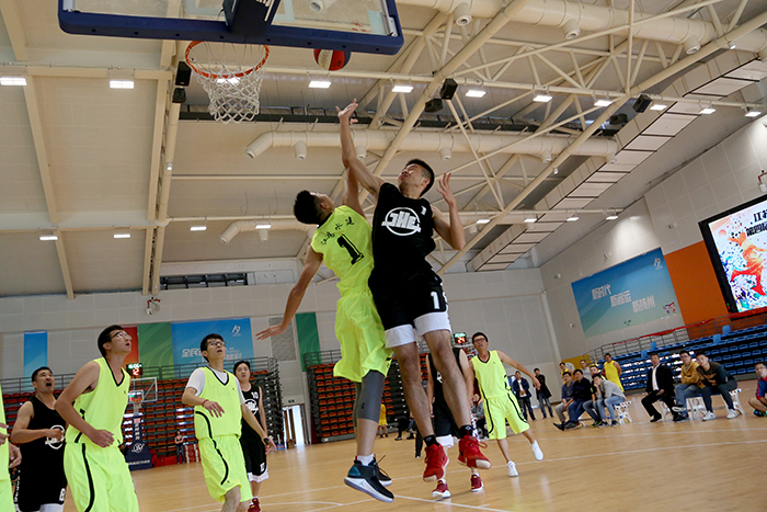 此次比赛既有强调团队合作的五人篮球赛,又有彰显个人能力的三分球大赛,对抗性强,观赏性高。第一天进行的小组赛采用抽签分组单循环赛制,ABC三组同时进行,各队球员都表现出了顽强的战斗力和坚韧的意志力。