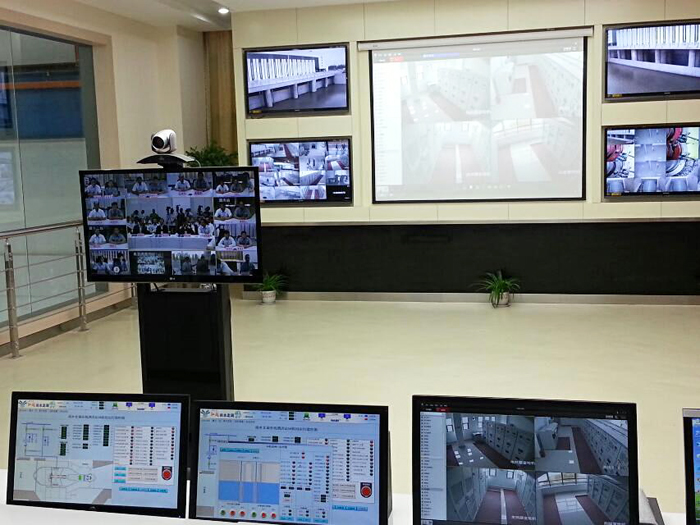 泗洪站主控室多个屏幕显示通水实况