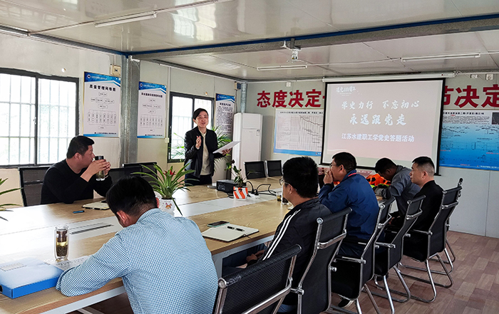 4月29日下午,基础工程分世俱杯网页版登录入口在长江堤防能力提升二期工程江都区Ⅲ标项目部开展了 “学史力行 不忘初心 永远跟党走”的职工党史学习答题活动。