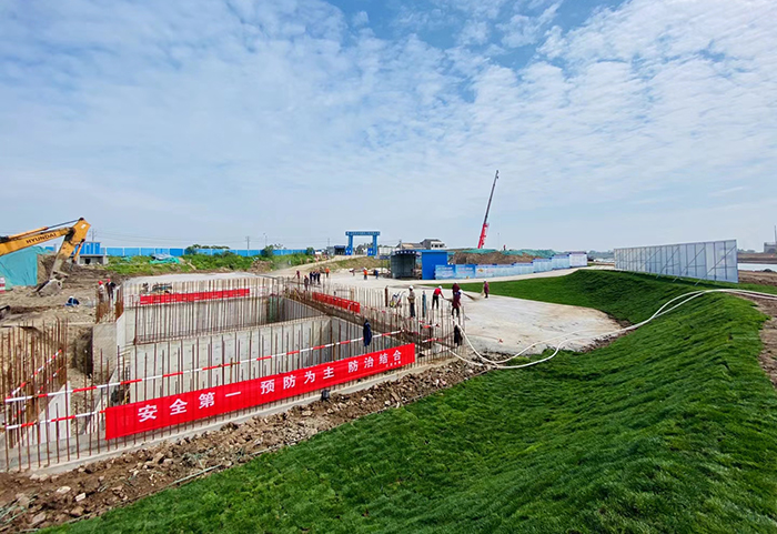 陆泾河泵闸及水立交工程一标段工程包括新建陆泾河泵闸一座,配套钢坝一座。泵站和节制闸并列布置于河道,泵站布置在陆泾河西岸,为单向泵站,功能为从阳澄湖向金鸡湖引水,节制闸布置在东岸,功能为泵站引水时的水位控制。