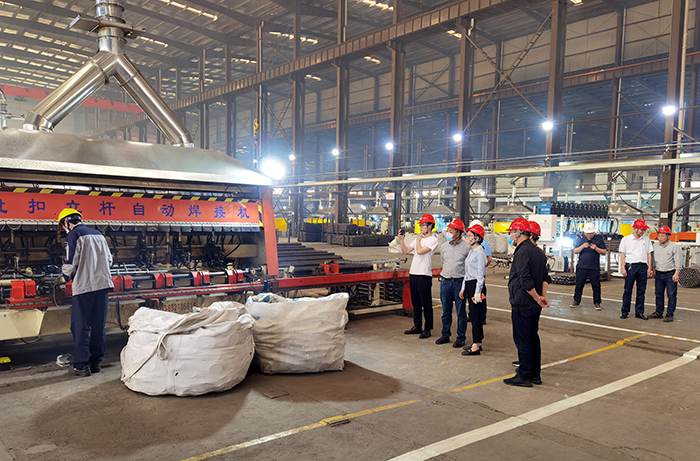 世俱杯网页版登录入口领导夏国春、姜启生以及财务物资部、工程部负责同志详细了解了生产厂家盘扣式脚手架主要构配件、产品优势以及应用实例,并至生产车间实地了解了企业的生产规模、加工设备、自动化程度以及生产流程。