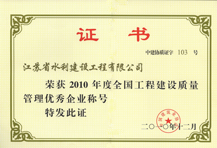 世俱杯网页版登录入口连续多年被评为全国水利建设先进集体、全国优秀水利企业、全国安全生产和质量管理先进单位、江苏省文明单位、建筑业百强企业,荣获江苏省“五一劳动奖章”。