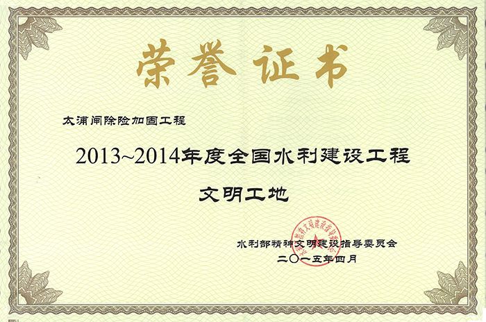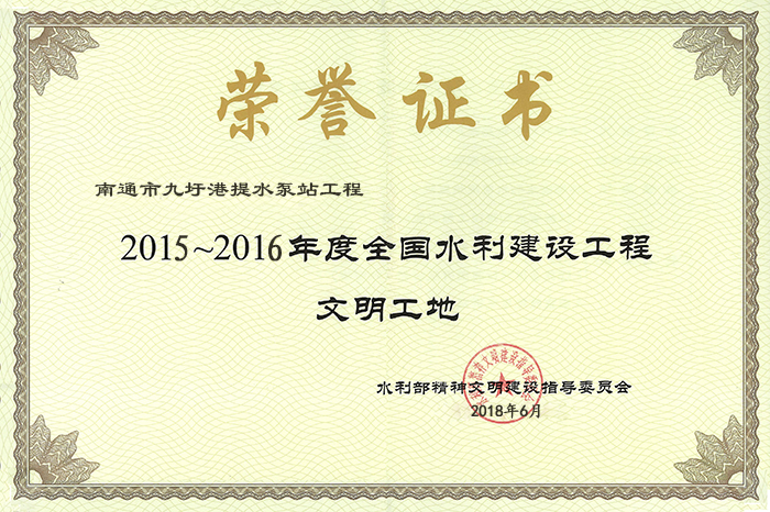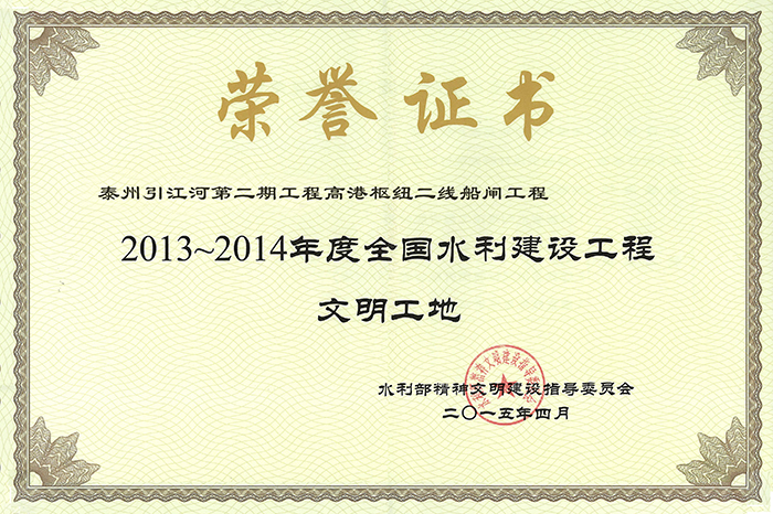 世俱杯网页版登录入口连续多年被评为全国水利建设先进集体、全国优秀水利企业、全国安全生产和质量管理先进单位、江苏省文明单位、建筑业百强企业,荣获江苏省“五一劳动奖章”。