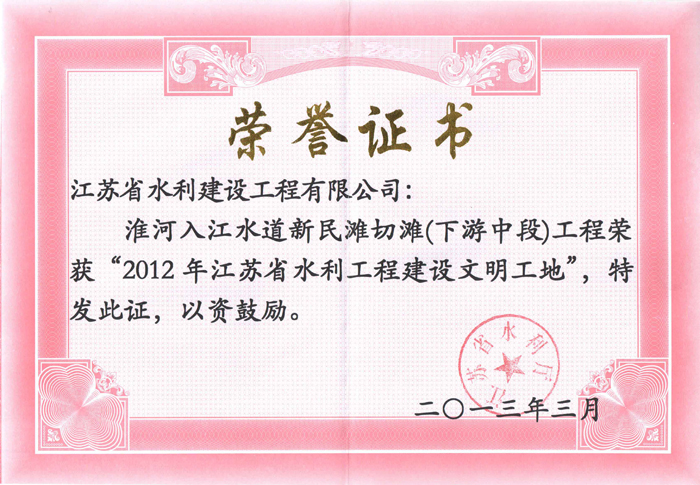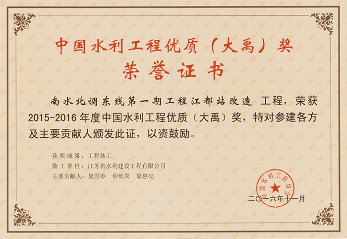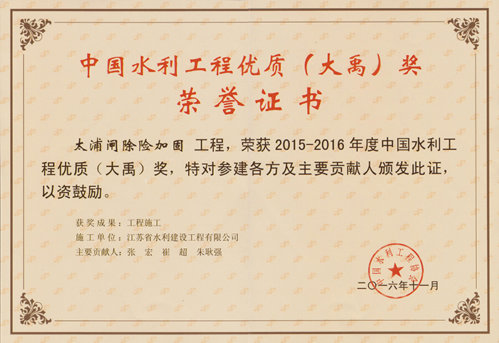 世俱杯网页版登录入口连续多年被评为全国水利建设先进集体、全国优秀水利企业、全国安全生产和质量管理先进单位、江苏省文明单位、建筑业百强企业,荣获江苏省“五一劳动奖章”。