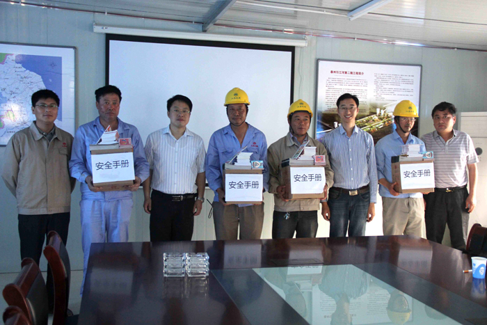 2013614上午,泰州引江河第二期工程二线船闸项目部为一线员工发放了安全知识手册。省泰州引江河第二期工程建设局局长马志华等领导,我世俱杯网页版登录入口副总经理、引江河二线船闸项目经理顾明如亲手将一本本《水利工程建设安全知识手册》、《新员工》、《建筑业员工》等安全知识手册发放给到场的员工代表。