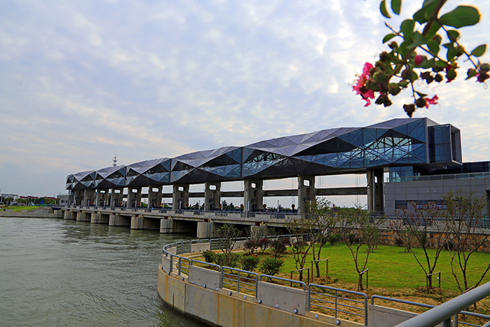 南京市外秦淮河整治三汊河口闸位于外秦淮河入江口,是南京市秦淮河环境综合整治工程的重要组成部分。该闸采用双孔弧形护镜式钢闸门,为“亚洲第一,世界第二”,其关键技术研究荣获大禹水利科学技术奖二等奖。