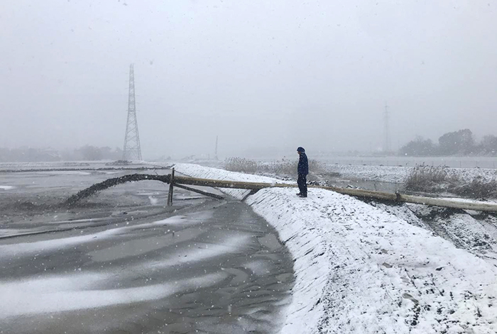 2月7日,落雪纷纷,银装素裹。常州分世俱杯网页版登录入口北干河2标的挖泥船马力全开,项目部所有人员都在迎风踏雪奔坚在施工一线。自春节至今,项目施工都没停止,这是整个新孟河项目加快施工进度推进的一个缩影。项目部抢工事迹两次被武进区电视台报道。目前,北干河2标已完成产值约8800万元,占比约103%。