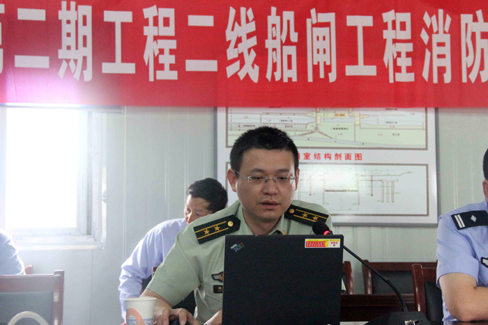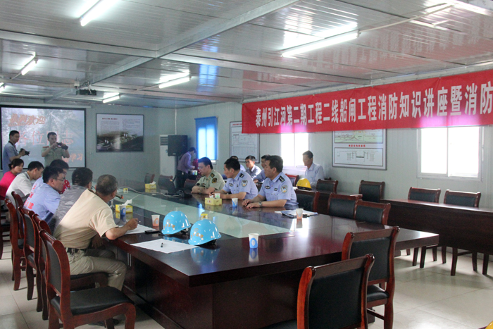 626下午,泰州引江河第二期工程二线船闸工程项目部邀请泰州市公安消防支队水上大队、泰州市公安局水警支队高港大队,举办了一场消防知识讲座及消防演练活动。省泰州引江河第二期工程建设局、二线船闸监理部的有关领导、我世俱杯网页版登录入口项目部管理技术人员、班组长等40多人参加了活动。
