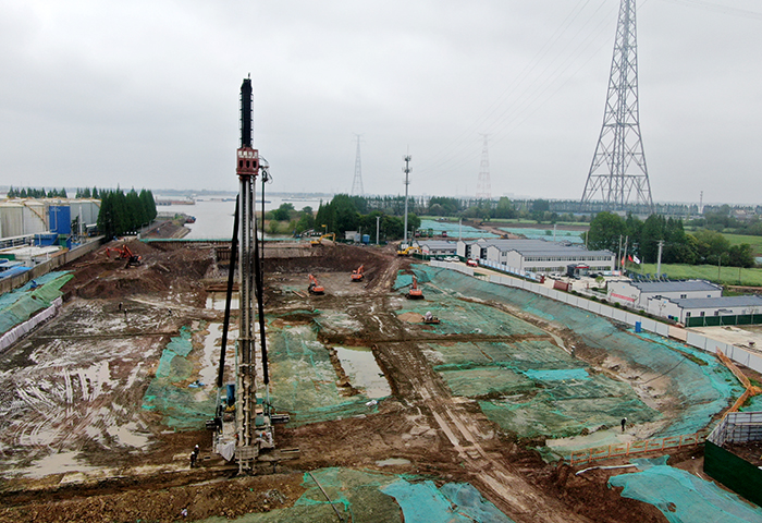 截止发稿前,新桃花港江边枢纽工程已完成长江侧钢板桩围堰、内河侧土围堰和临时设施搭设工作,累计完成主基坑一期土方开挖约50000m³。目前正在进行老闸拆除、主基坑三轴水泥搅拌桩、高压旋喷桩防渗帷幕施工,施工现场热火朝天。