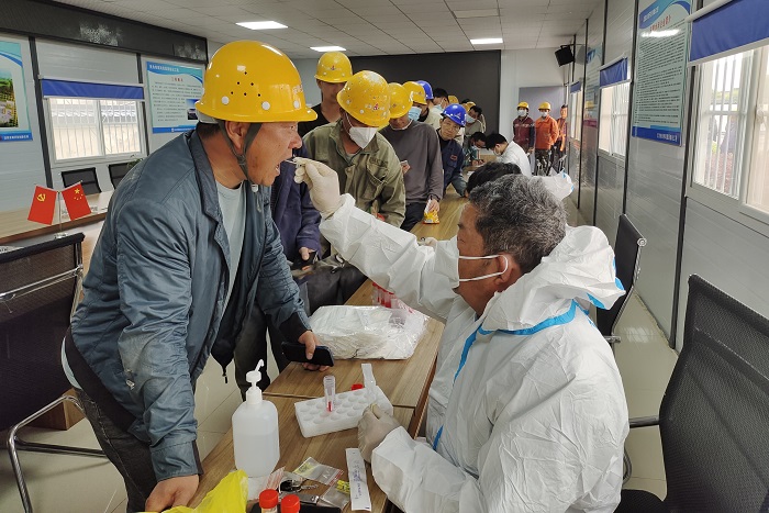 面对疫情防控的严峻形势,项目部一方面落实疫情防控相关规定,实行全封闭管理,严格落实属地政府全员核酸、“两码联查”、体温测量和信息登记的要求,定期进行消毒杀菌等各项防护工作;另一方面加强宣传教育,发放防疫手册和用品,督促施工人员认真做好个人日常防护,自觉养成良好的卫生习惯,织密织牢疫情防控网。