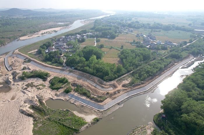 安庆市皖河综合治理工程(皖河后续治理)太湖段涉及长河、龙潭河、汪洋河三条河道治理。主要建设内容包括河道堤身加高培厚及护坡21.8km,堤顶混凝土防汛道路20.8km,防浪墙11.1km,块石挡墙3.6km,河道清淤67588m3,预制块护坡8260m2,新建排水涵闸6座。