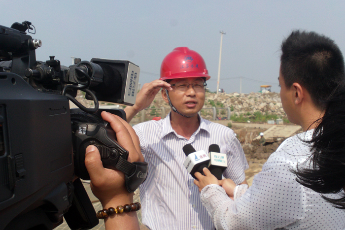 7月3日,连云港电视台等6家媒体来到我世俱杯网页版登录入口承建的新城闸桥施工现场,采访了项目经理聂春发,报道了项目部组织开展“大干200天,全力保通车”劳动竞赛活动。