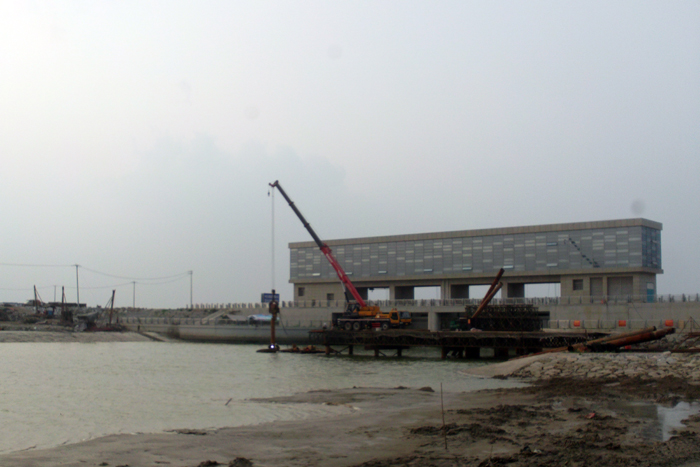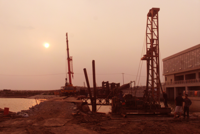 一边是如火如荼的建设工地,另一边是辽阔平静的海面。骄阳下江苏水建人正默默地工作,向着目标坚定前进……