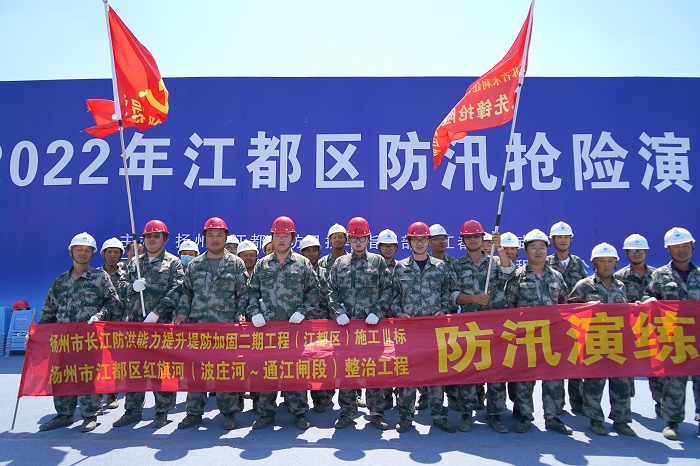 6月15日上午,江都区开展防汛抢险演练,我世俱杯网页版登录入口基础分世俱杯网页版登录入口扬州市长江防洪能力提升堤防加固二期工程(江都区)施工Ⅲ标、扬州市江都区红旗河(波庄河~通江闸段)整治工程两项目部,组织党员抢险突击队和工人先锋抢险突击队,开展联合防汛应急演练。